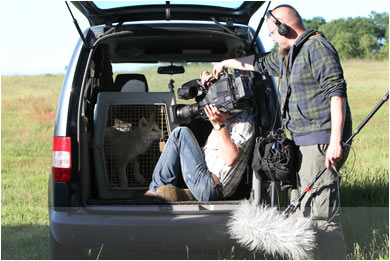 Heute ist Naaja nach einem kleinen Spaziergang mit Dachshund Amsel und Mufflon Emi ins Gehege umgezogen. Das Filmteam hat jede Bewegung dokumentiert. (Dreharbeiten für Reportage: Wolfskind Naaja)Read More