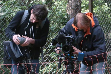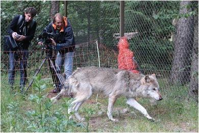 Das Filmteam setzt heute die Dreharbeiten direkt im Gehege von Rico und Lobo fort, gesichert durch einen Elektrozaun. Es ist gut gegangen.Read More
