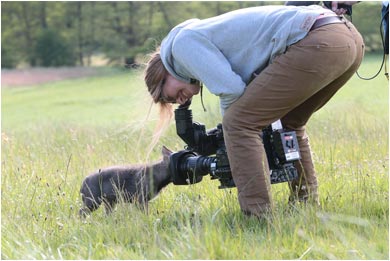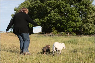 Wolfswelpe Yuma und Lamm Mimi