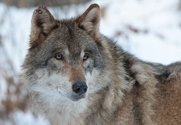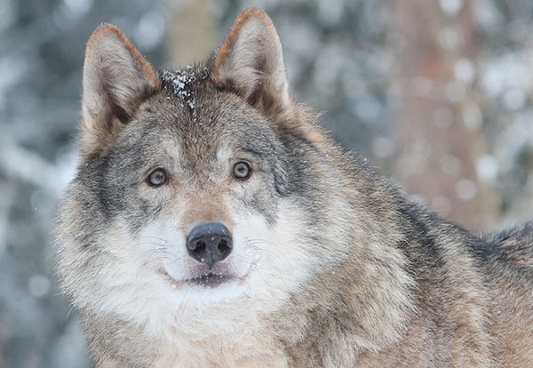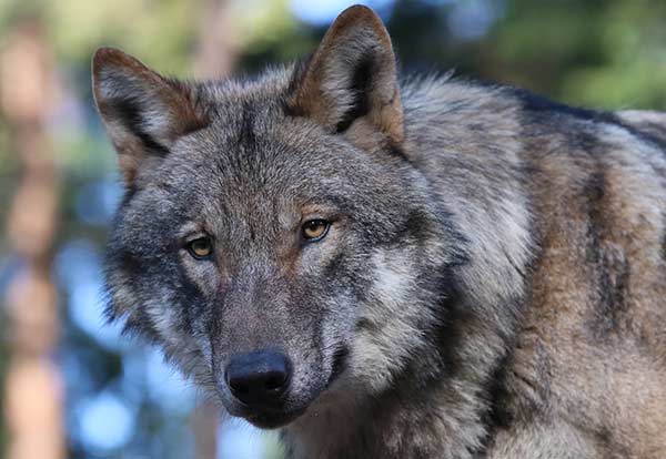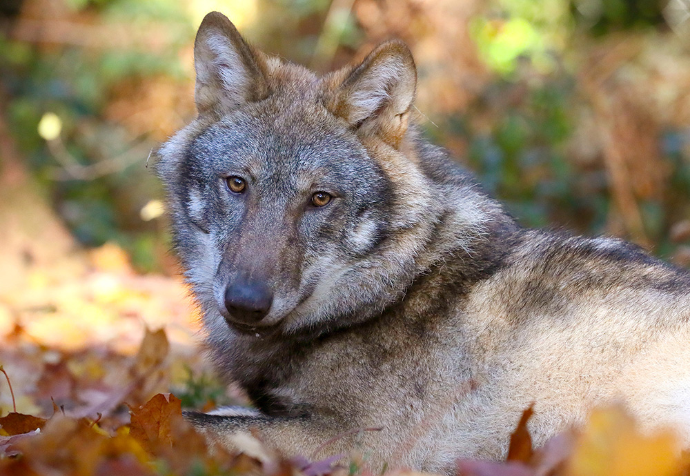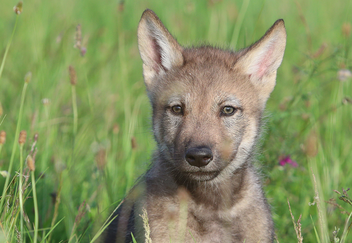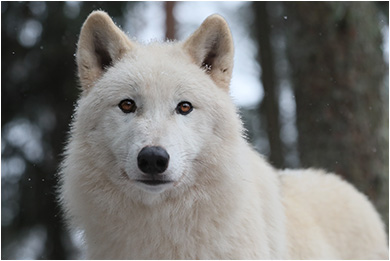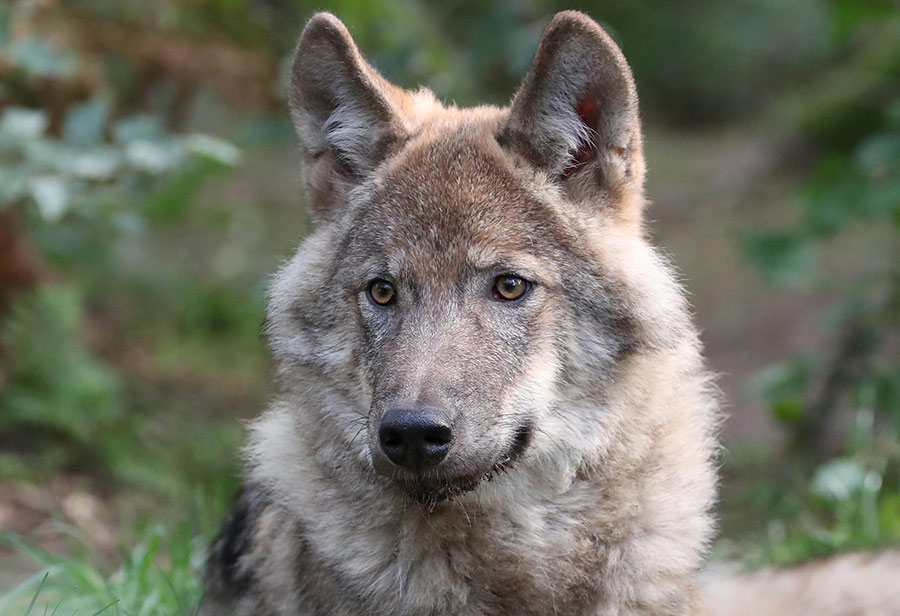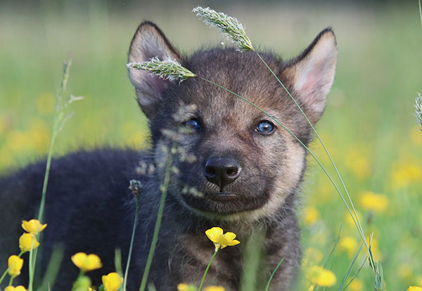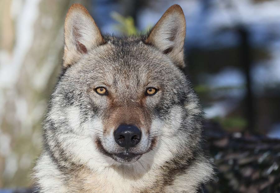Kolja ist ein wunderschöner Wolf mit einem markanten dunklen Fleck zwischen den Augen. Er kann sich sehr stürmisch freuen, wenn er entspannt ist – ebenso ausgeprägt kann er sich aber auch fürchten z.B. vor Elektrowagen, wie sie im Wildpark benutzt werden. Wenn er sich dann wieder beruhigt, möchte er vertrauten Menschen ganz nah sein und überschüttet sie mit Zuneigung.